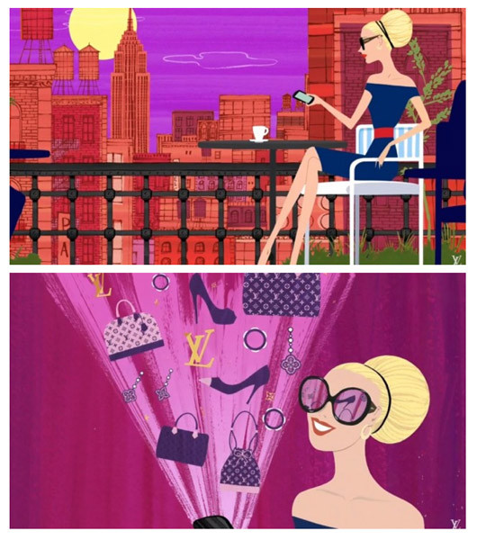 Pero también sufrí el hastío de ver como las "chicas labanda" aparecían en camisetas, cuadernos, bolsos y todo tipo de merchandising...durante tiempo ha estado desaparecido, pero da gusto ver otra vez alguno de sus trabajos, esta vez para Louis Vuitton. Genial, como siempre, ¿no os parece?